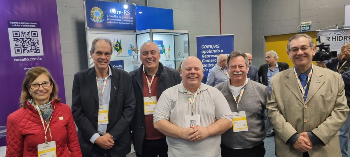 Na oportunidade, os amigos do CORE-RS, que defende a mesma ideia (que as associadas AGAS somente recebam Profissionais Representantes Comerciais em dia com o Conselho), receberam os representantes do Sincor em seu estande.